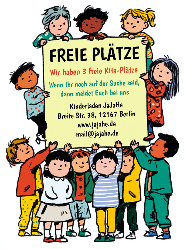 Wir sind eine familiäre Kindertagesstätte (EKT) in Steglitz – ganz in der Nähe vom Rathaus Steglitz – und betreuen in unserem Kinderladen aktuell 17 Kinder ab 2 Jahren durch vier Erzieherinnen, einen Auszubildenden und eine FSJ-lerin.